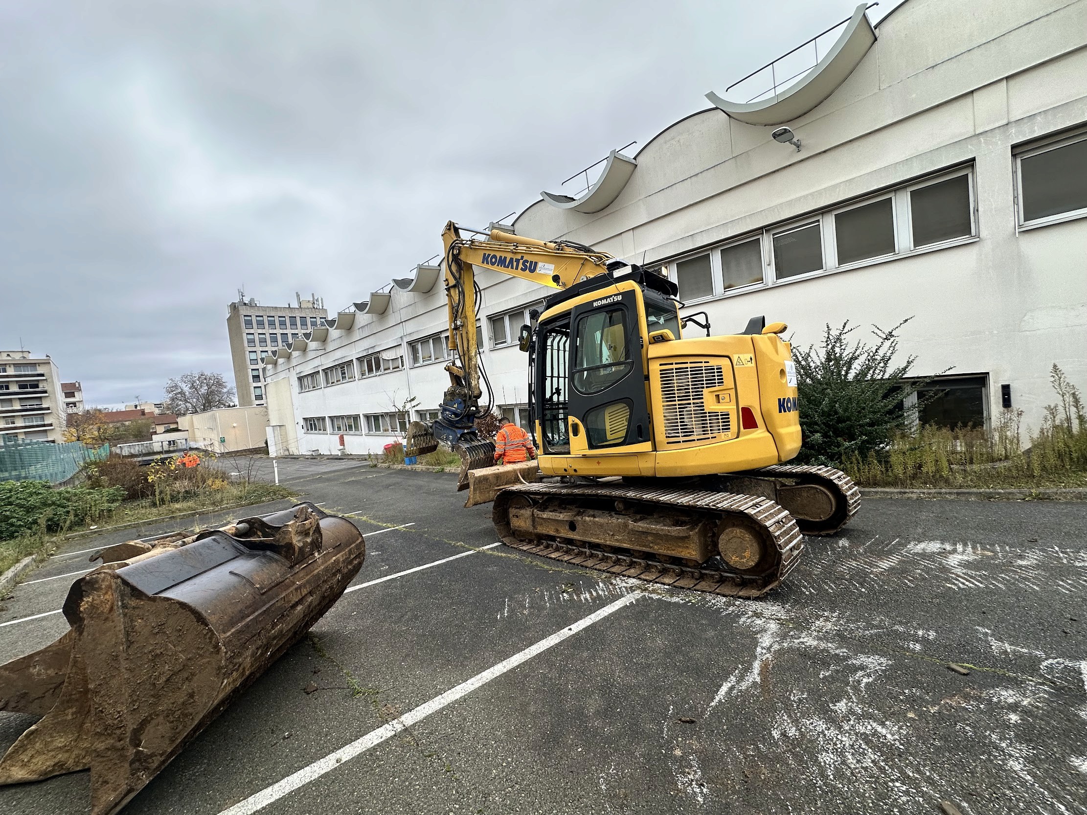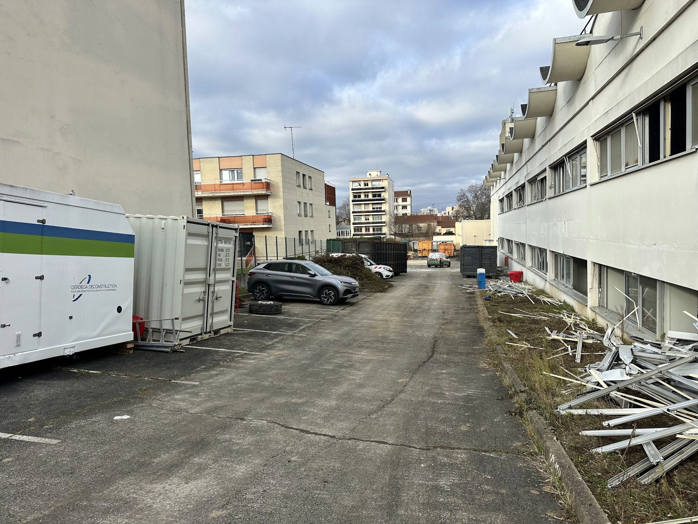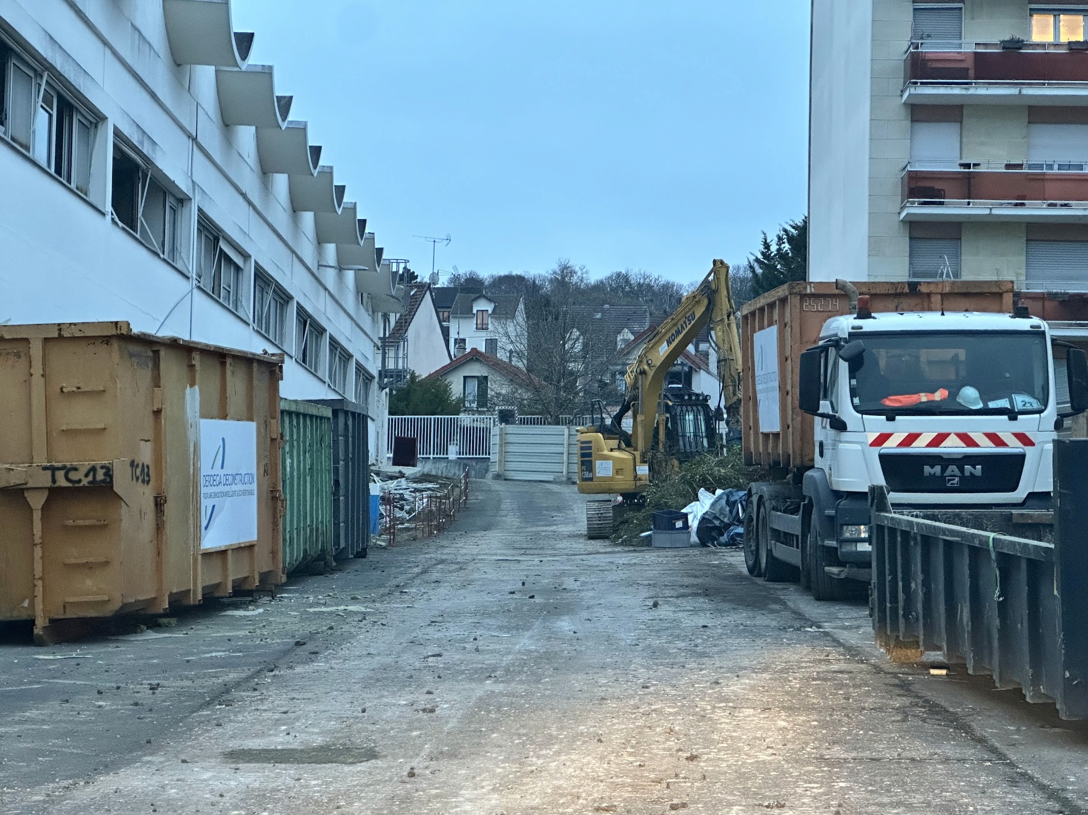 À Nanterre (92), ce chantier pour Altana (fin 2025, en cours) combine curage, désamiantage et démolition mécanique, avec une contrainte majeure : la conservation d’une façade du bâtiment existant. L’intervention intègre la purge des fondations, la purge des réseaux enterrés et des opérations spécifiques de levage de charges lourdes, indispensables au phasage et au maintien de la stabilité pendant la déconstruction. L’objectif est de sécuriser l’environnement, de maîtriser les interfaces structurelles et de livrer un terrain nivelé, sous clôture et sécurisation, conforme aux exigences de réhabilitation ou de reconstruction.
