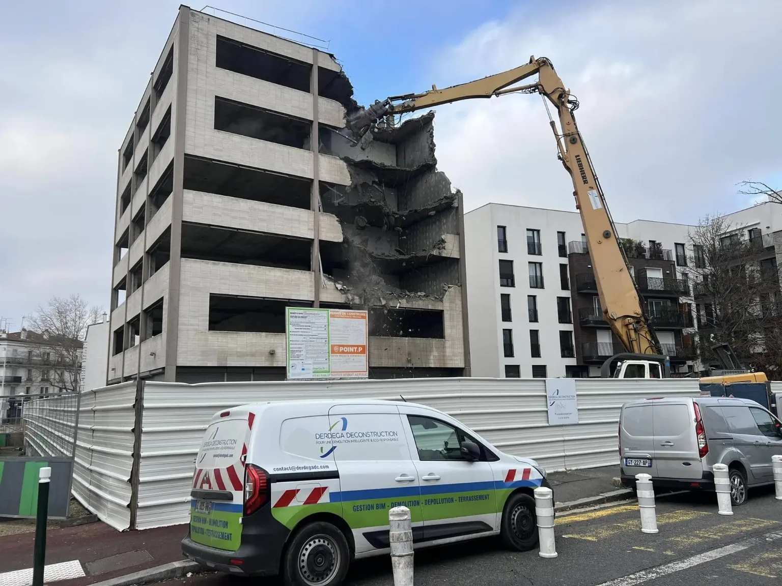Opération d'envergure en plein cœur de Nanterre pour la Foncière SIBA. Ce projet combine un curage intégral, une démolition mécanique de grande hauteur (R+5) et une purge complète des infrastructures en sous-sol (parking et fondations). Une intervention maîtrisée en zone urbaine dense, du sommet jusqu'au terrassement final.